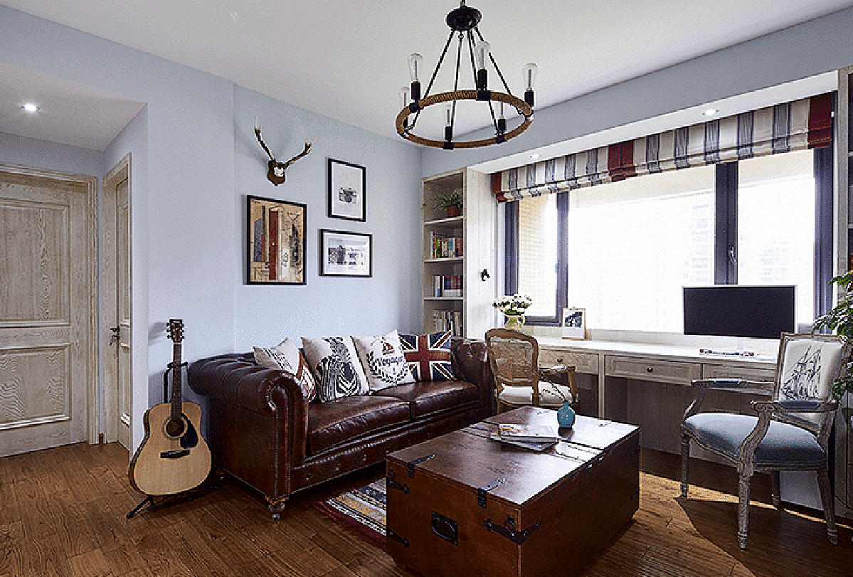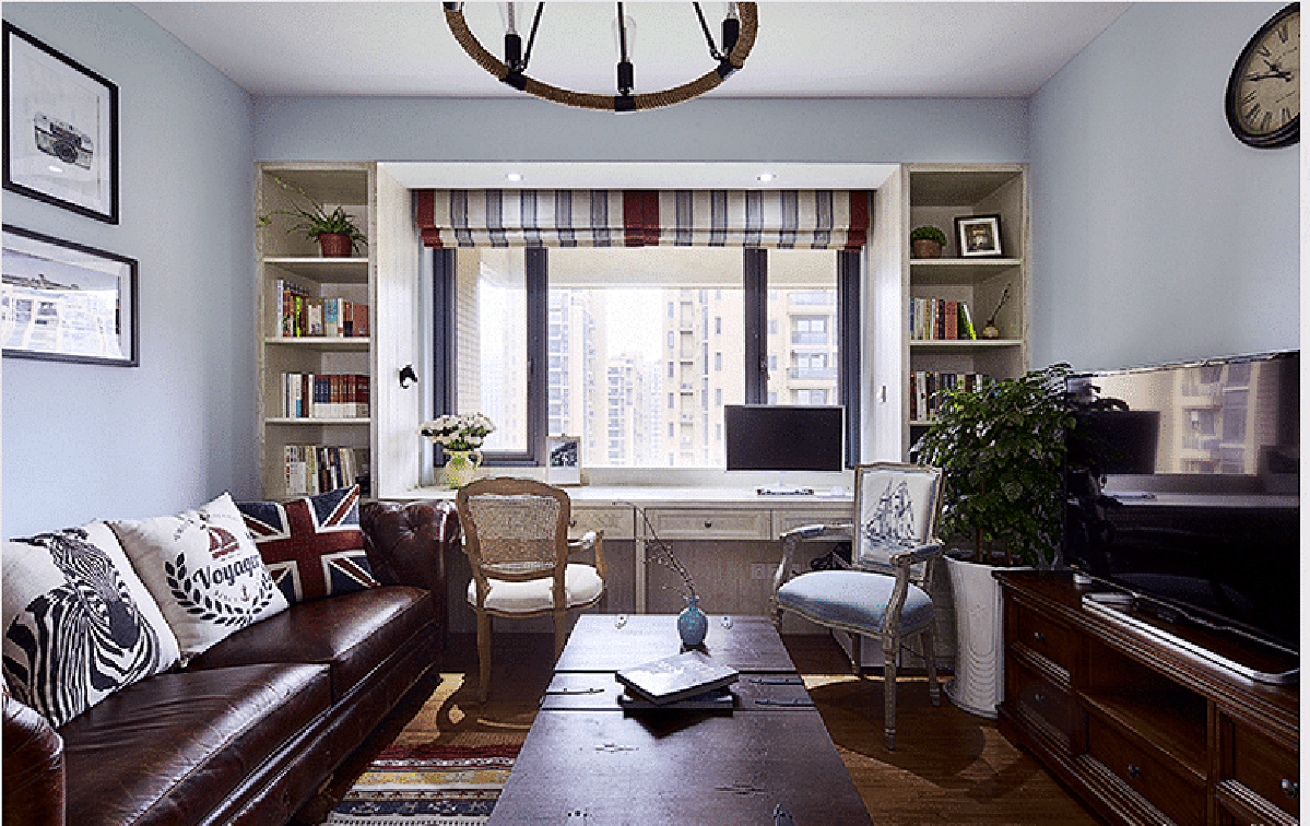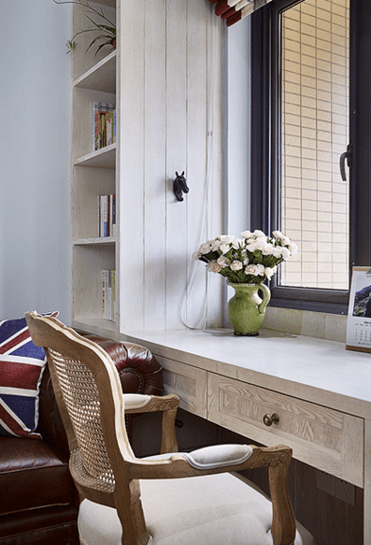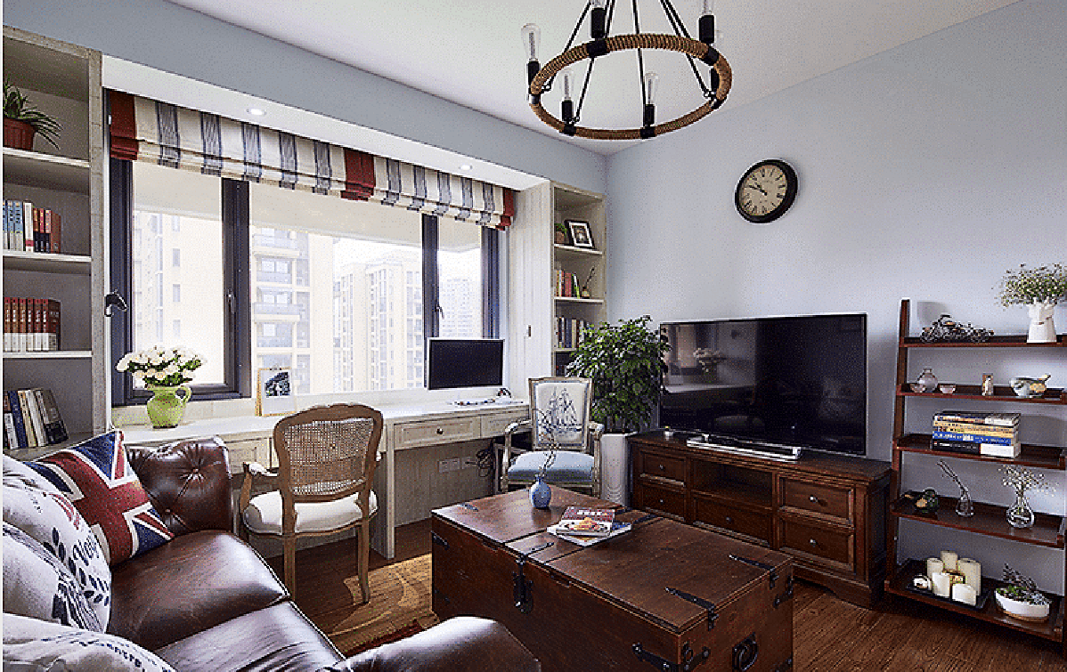 这间92平大小的美式风格的公寓,在客厅内巧妙的运用隔断隔出了一间书房、一个休闲区、以及一个飘窗,这间公寓装修案例中,隔断的利用率简直可以用淋漓尽致来形容,关键每一块被隔出的空间看上去在平日的实用率上也是极其实用方便的,大家不妨可以以此作为隔断装修时的参考吧。