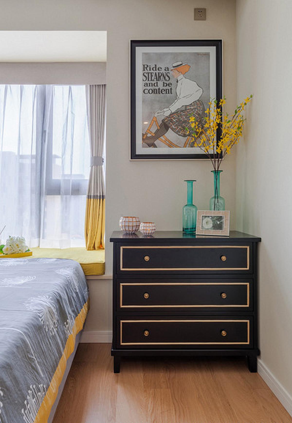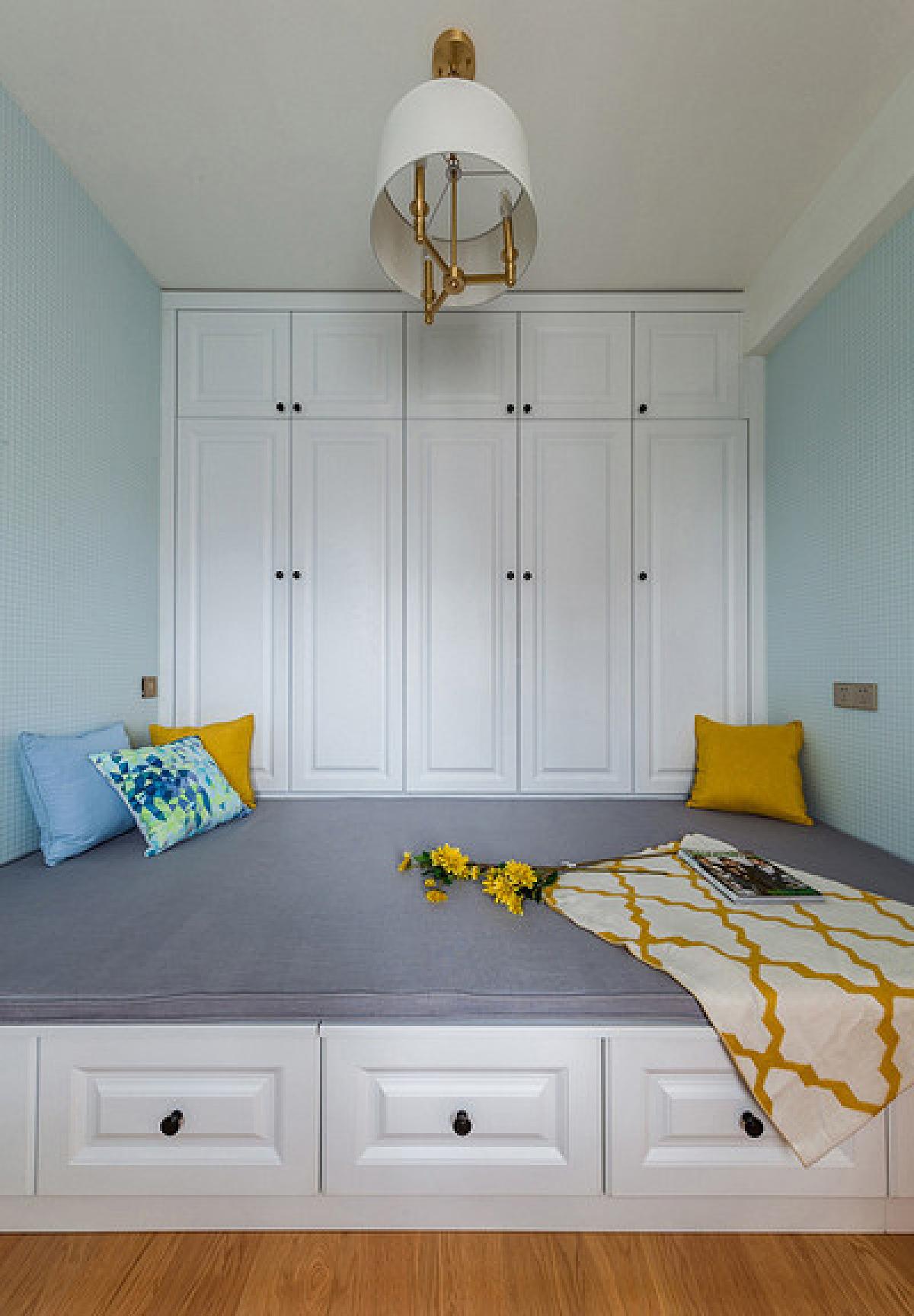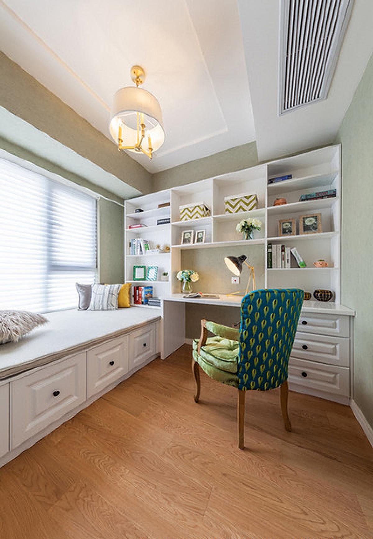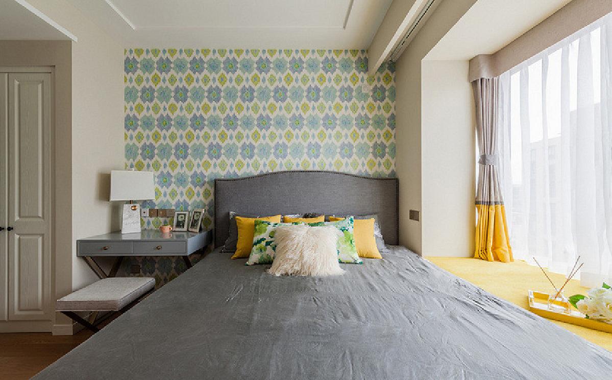 美式混搭风格设计的三居室,客厅与玄关处采用靓丽的青绿色装饰墙壁清新舒畅。