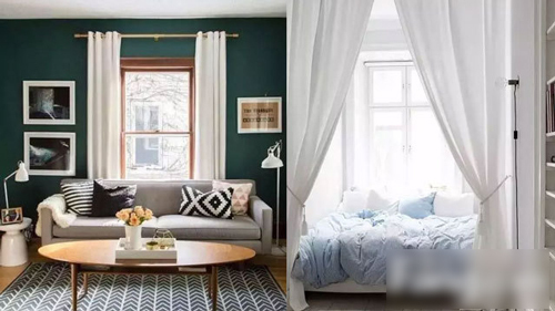 例如遮光性、隔音性和保温性都很好的棉、麻、绸缎、植绒材质的窗帘,就适宜用于卧室,而客厅因其对透光性和装饰感要求较高,就更适合使用在棉质或是绒质窗帘内层增加一层纱质窗帘的搭配,效果会比单层窗帘更好。