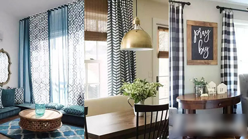 丰富的花纹窗帘,有趣且不单调,但不易搭配,没有选择好的话,容易毁掉整个空间。低调的条纹图案还真是万能的。与配饰配套的搭配啊,绝对不会出错!格子的窗帘很有田园气息。家中要是风格比较日式,单条状的窗帘一下子就能把逼格提上来.