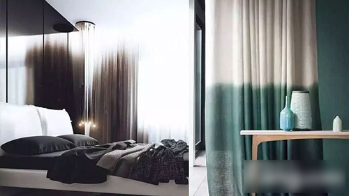 渐变色窗帘,不同渐变颜色有不同的风格,需注意材质与风格是不是合适。使用跟墙面颜色一致的渐变窗帘,保持风格的一致性。卧室里一般不适宜用太深的颜色装饰,但是渐变深色的上部白色略微透光,不会让人感到心情压抑。