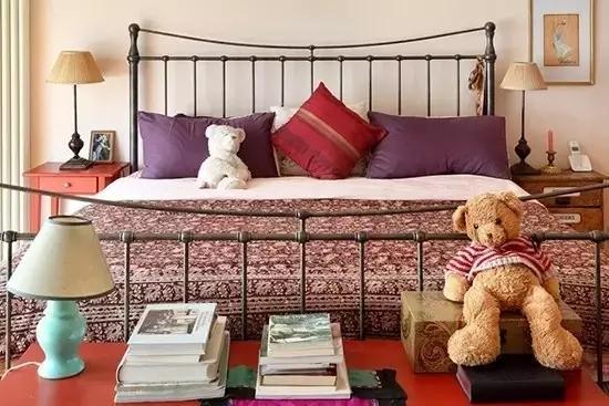 床头摆个毛绒绒的小熊,与有机的棉布床品搭配,卧室瞬间变得温馨无比。粉红色墙面、铁艺床,欧式简约灯饰,为空间装点出甜美,同时有玩偶相伴,更为空间增添可爱女生的气息。