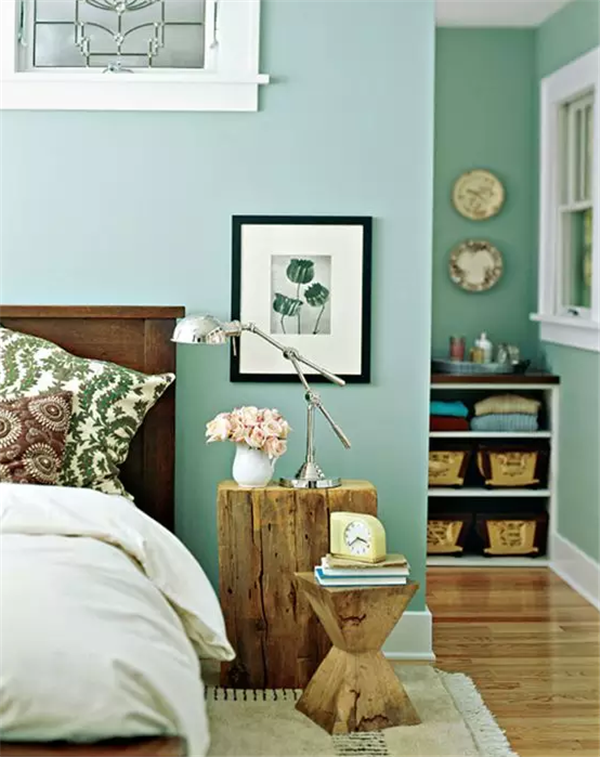 卧室里除了要有一张舒服的大床,当然还要有床头柜了。不仅能储物,只要搭配好,还可以为卧室增色不少。以往的床头柜以小边柜居多,但是现在的形式越来越多样了,推车、椅子、梯子等等都能变身为床头柜。住户们也更加注重轻便。