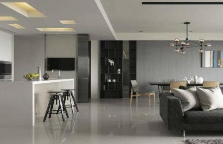以低调质材交映出淡雅人文意象,不过于抢眼的中性色彩感度,和连续面的日光交融。 全然通透的客餐厨三者,连结至半开放式书房,微调格局后串联宽裕尺度,舒适流畅的空间感,让从容与闲雅气息油然而生。以灰黑色为主要搭配逻辑的空间之中,石材、沙发茶几、餐区壁纸,层序延伸的段落交叠成景。而室内简练的灯饰和量体线条,以简驭繁点缀其中,衬映简约雅致的设计感,让空间自然散发百看不厌的独特气质。