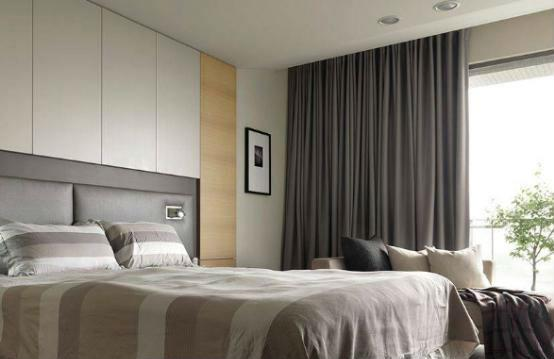 简约的线条蔓延中,以白色与灰色系裱布为主、木纹为辅,优雅气质自然生成。